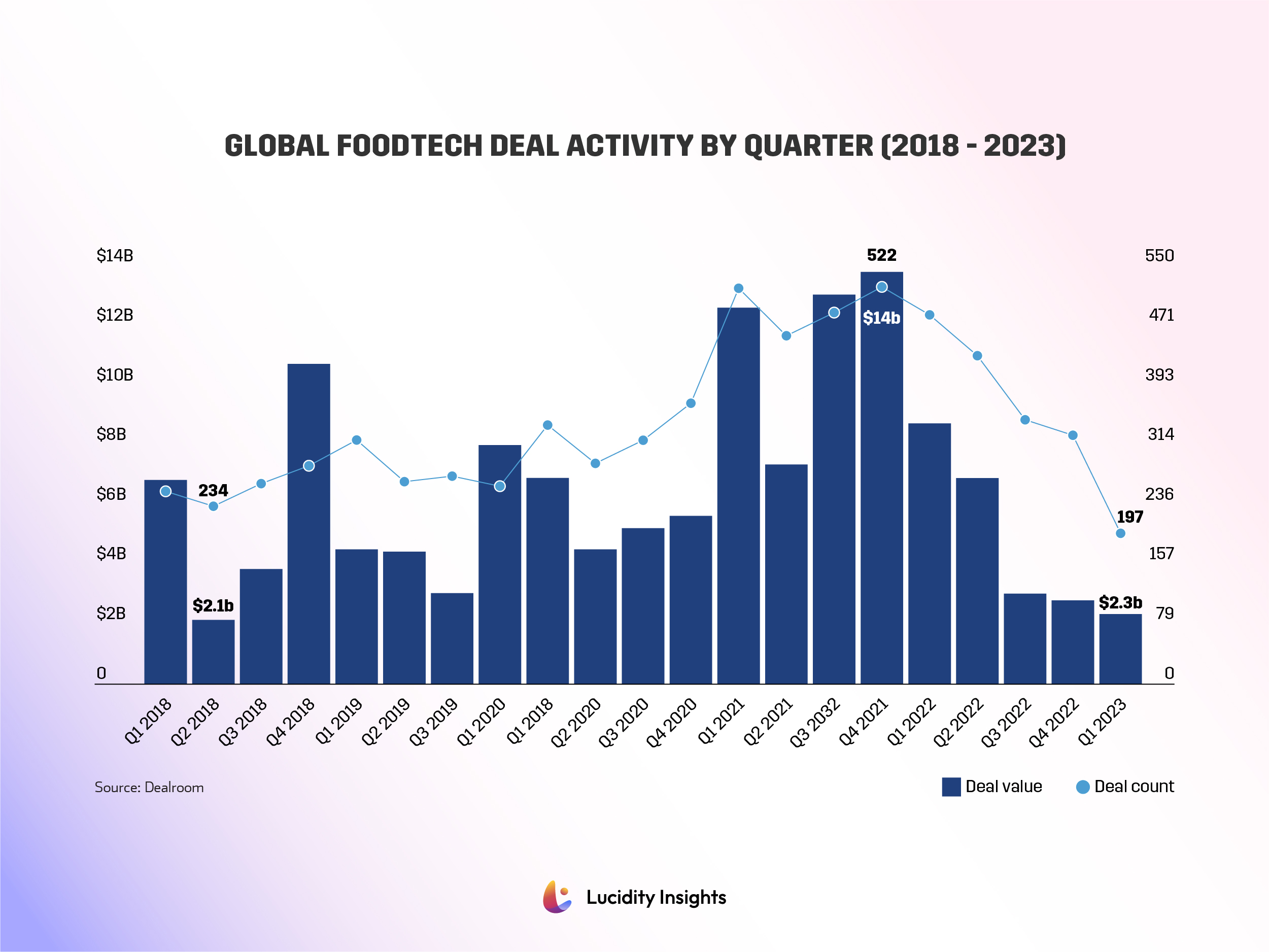 Infobyte: Global Foodtech Deal Activity by Quarter (2018-2023)