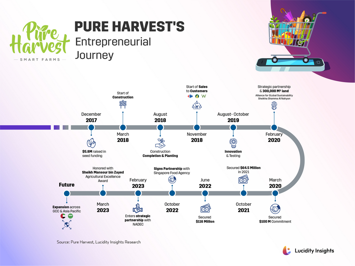 With its state-of-the-art tech, Pure Harvest is no stranger to global recognition. The company has secured over US $387 million in capital commitments to date, with a truly international investor base, including the UAE's Shorooq Partners, the UK's Metric Capital Partners, Saudi Arabia's Olayan Group, Korea's IMM Investment Corp, Kuwait's Wafra, the UK's Metric Capital Partners, and Archer Private Investments from the USA. Forbes recognized Pure Harvest as the #1 Most Funded Startup in MENA in 2022, and many claim it is the most funded Agtech in the Middle East, Africa and South Asia (MEASA) region.