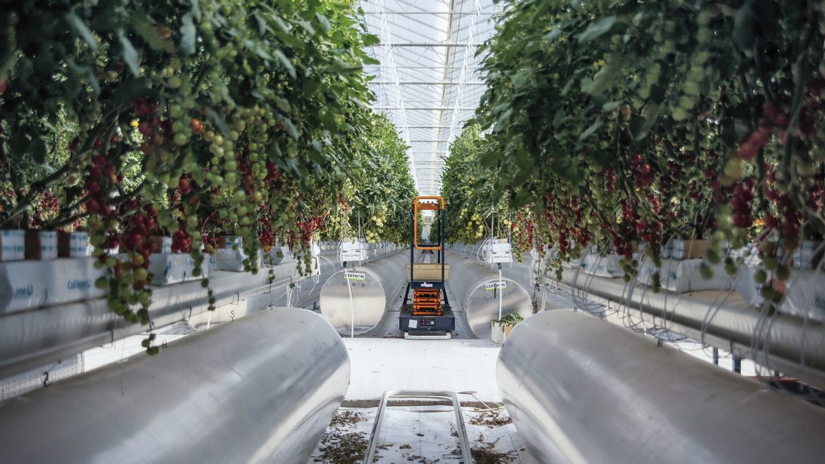 Pure Harvest's revolutionary greenhouses are high-tech and over-pressurized climate-control system, which not only serves to maintain temperatures at optimal growing conditions, but also helps to keep insects and diseases from breaching the growing area. The pressurized air escapes from rooftop vents that resists entry from particles and insects. Their solution also recaptures condensation water, while carbon dioxide dosing is injected into the greenhouse to stimulate the photosynthesis process. Advanced hydroponic irrigation systems recirculate 100% of excess water, while sensors and advanced data analytics manage the greenhouse climate at all times. Today, Pure Harvest currently consistently produces over 17 million kilograms of fruit and vegetables annually.